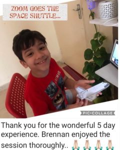 The Cosmic Jaunt activity kit includes all the necessary materials required for the online sessions, such as stationery, worksheets, and hands-on activities related to space exploration and astronomy.