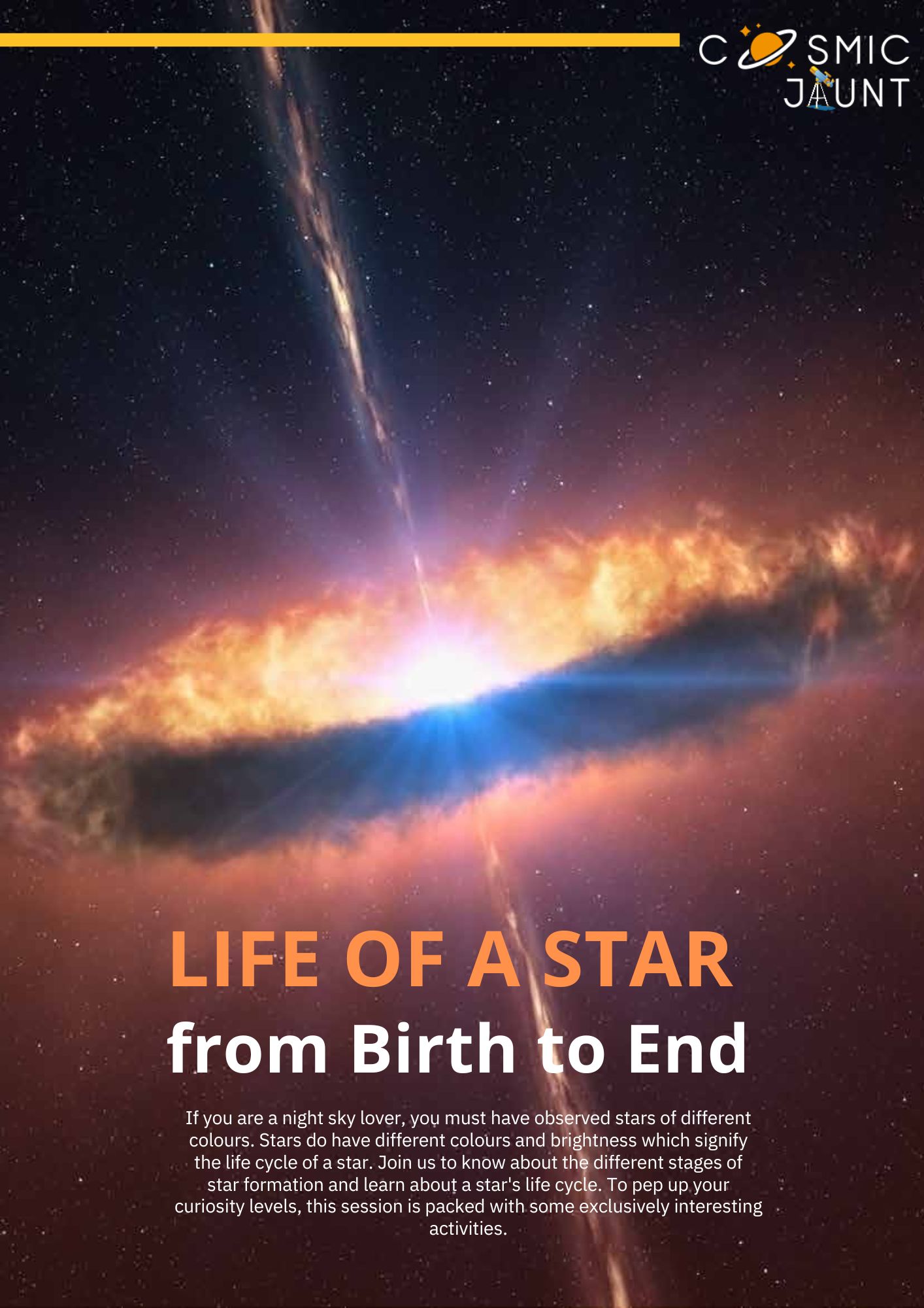 If you are a night sky lover, you must have observed stars of different colours. Stars do have different colours and brightness which signify the life cycle of a star. Join us to know about the different stages of star formation and learn about a star’s life cycle. To pep up your curiosity levels, this session is packed with some exclusively interesting activities.